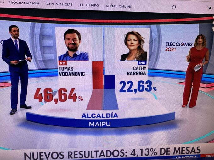 Tomás Vodanovic (RD) triunfa como alcalde en Maipú con el 47,3% de los votos. Cathy Barriga solo alcanzó 22,6% de las preferencias.