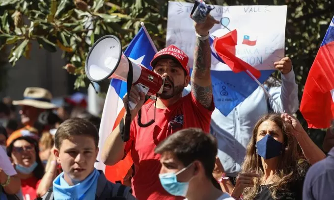 Grupo de personas partidarias del Rechazo realizan marcha en contra de la propuesta que prepara la Convención Constitucional.