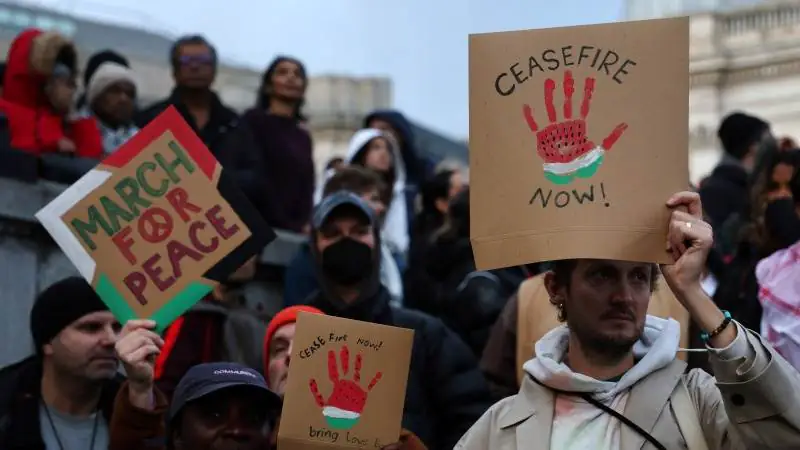 Los manifestantes pidieron un alto el fuego inmediato entre Israel y Hamás y la independencia palestina. Los organizadores cifraron el número de personas presentes en unas 40.000, mientras que la policía no proporcionó una estimación.